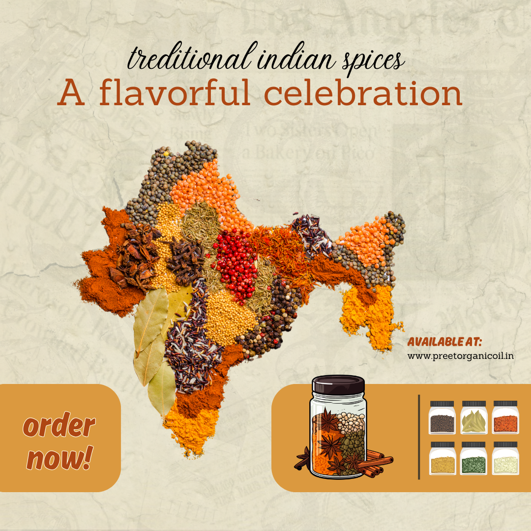 At Preet Organic Spices & Oil, we bring you the soul of India in every spice and drop of oil. Rooted in tradition and inspired by nature, our products are crafted with purity, passion, and a deep respect for age-old practices. From hand-picked spices bursting with flavor to oils that preserve every ounce of goodness, we’re here to make your meals aromatic, authentic, and unforgettable. Join us in celebrating the taste of India—naturally!